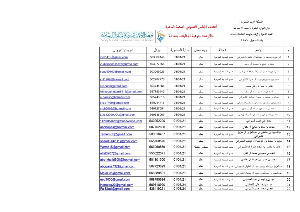سجل اشتراكات أعضاء الجمعية العمومية لعام 2021-2022-2023