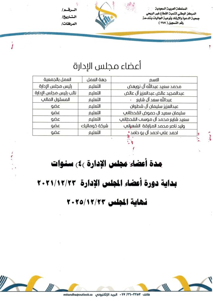 مجلس الإدارةبواسطة جمعية الدعوة والارشاد بتندحة2022-11-012025-09-30 للتواصل مع أعضاء المجلس قرار تعيين مجلس الإدارة محضر توزيع المناصب أفصاح عدم وجود علاقة بين المجلس والإدارة التنفيذية سياسة تعارض المصالح صلاحيات مجلس الإدارة إفصاح ممارسة الصلاحيات قائمة الإجراءات لتعريف أعضاء الجدد بعمل بالجمعية اترك تعليقاً إلغاء الردلن يتم نشر عنوان بريدك الإلكتروني. الحقول الإلزامية مشار إليها بـ *الاسم * البريد الإلكتروني * الموقع الإلكتروني التعليق * احفظ اسمي، بريدي الإلكتروني، والموقع الإلكتروني في هذا المتصفح لاستخدامها المرة المقبلة في تعليقي.